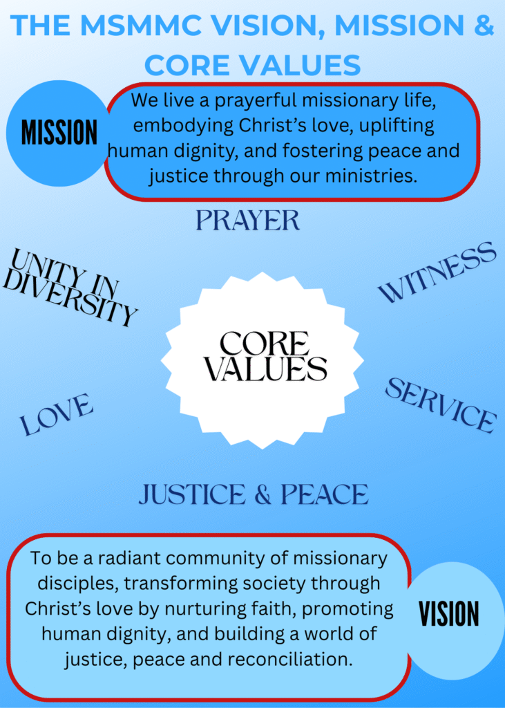 Guided by Mary, our Model and Patron, the Charism of the Institute is to share Christ’s love for His people through the motherhood of Mary.